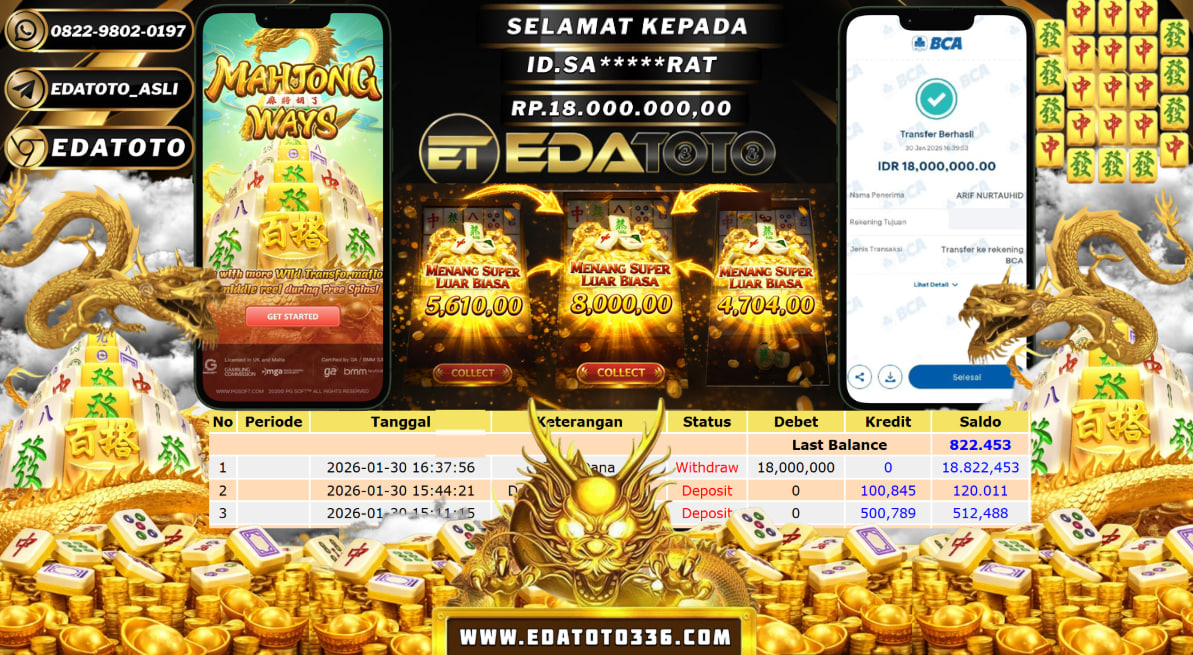 Selamat Kepada Pemilik user ID : SA***B**T Hari/Tanggal :SABTU/ 31 Januari 2026 Jackpot : Rp. 20,000,000 JT Withdraw : . . .