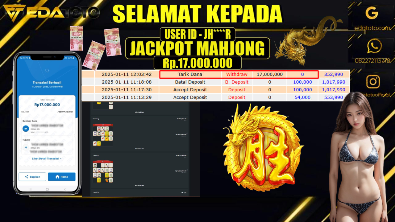 Selamat Kepada Pemilik user ID : OKL**L Hari/Tanggal : KAMIS / 09 JANUARY 2025 Jackpot : Rp. 10.000.000 JT Permainan . . .
