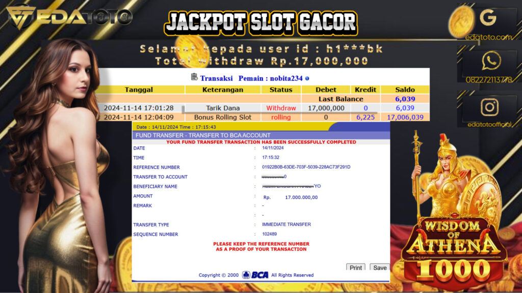 Selamat Kepada Pemilik user ID : H1***BK Hari/Tanggal : Jumat/ 28 DESEMBER 2024 Jackpot : Rp. 17.000.000 JT Permainan : . . .