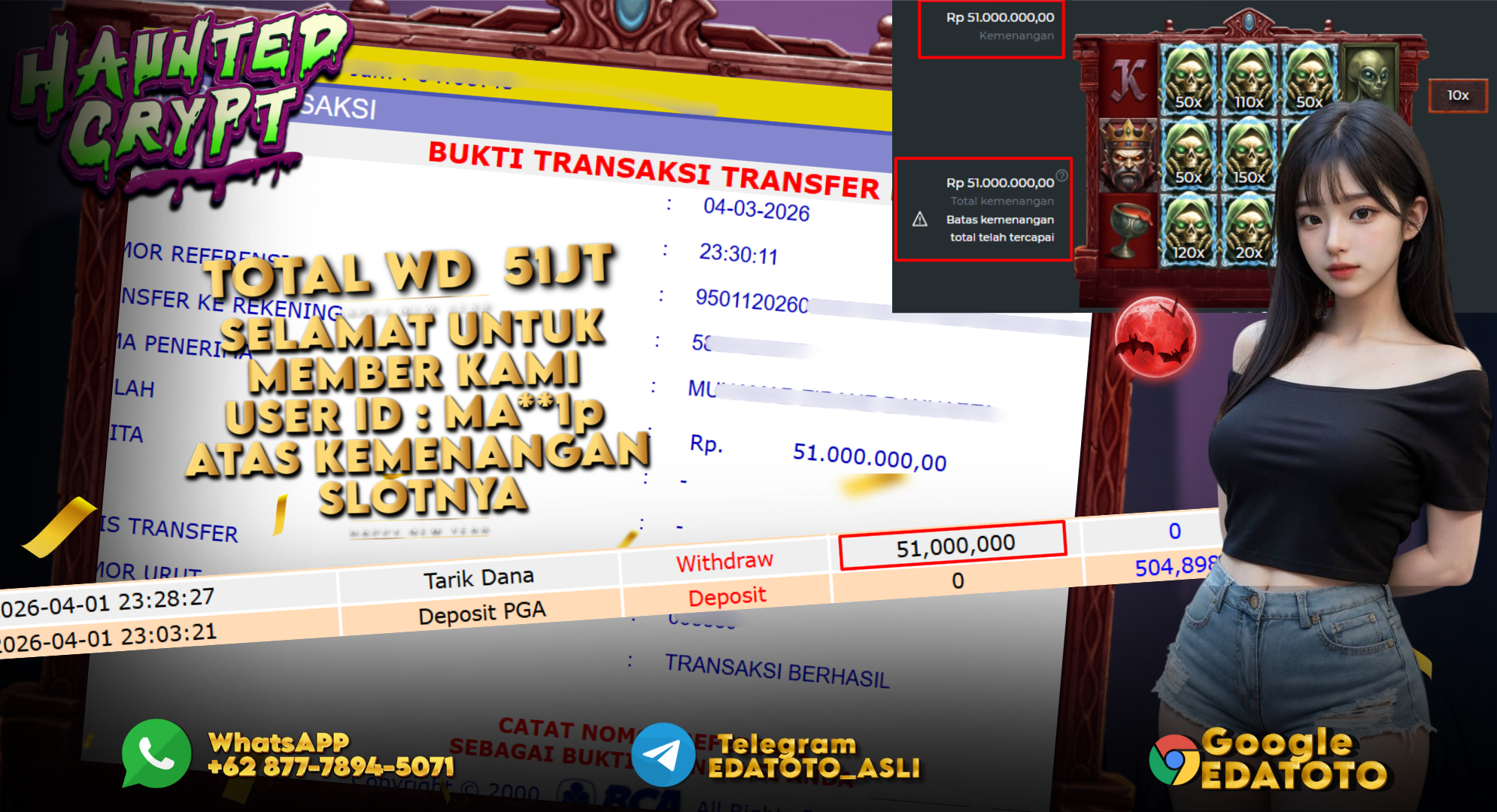 Selamat Kepada Pemilik user ID :MA**1p Hari/Tanggal : Rabu/ 04 MARET 2026 Jackpot : Rp, 51,000,000 JT Withdraw : 51,000,000 . . .