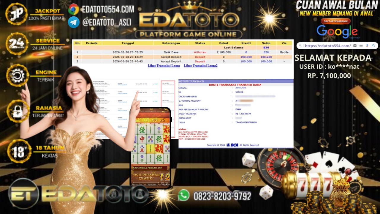 Selamat Kepada Pemilik user ID : Dr****** Hari/Tanggal : Jumat/ 27 februari 2026 Jackpot : Rp, 6,300,000 JT Withdraw : . . .