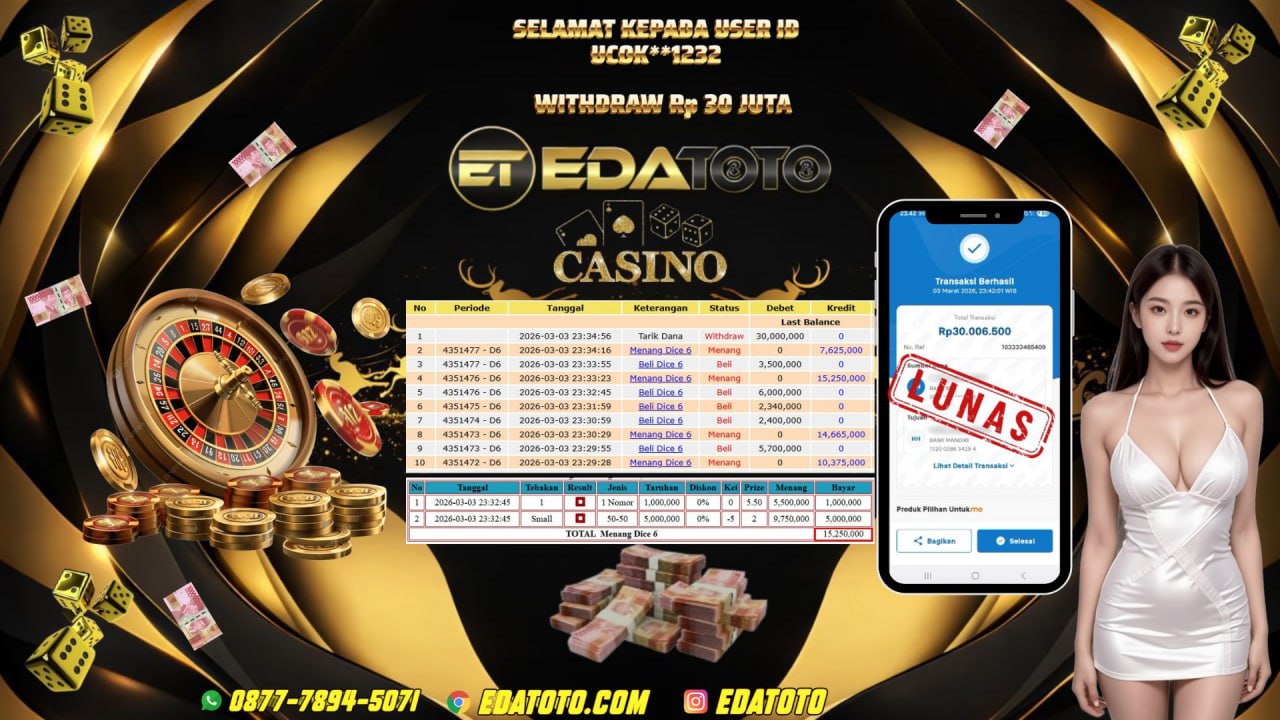 Selamat Kepada Pemilik user ID :UCOK**1232 Hari/Tanggal : selasa / 03 MARET 2026 Jackpot : Rp, 31,000,000 JT Withdraw : . . .