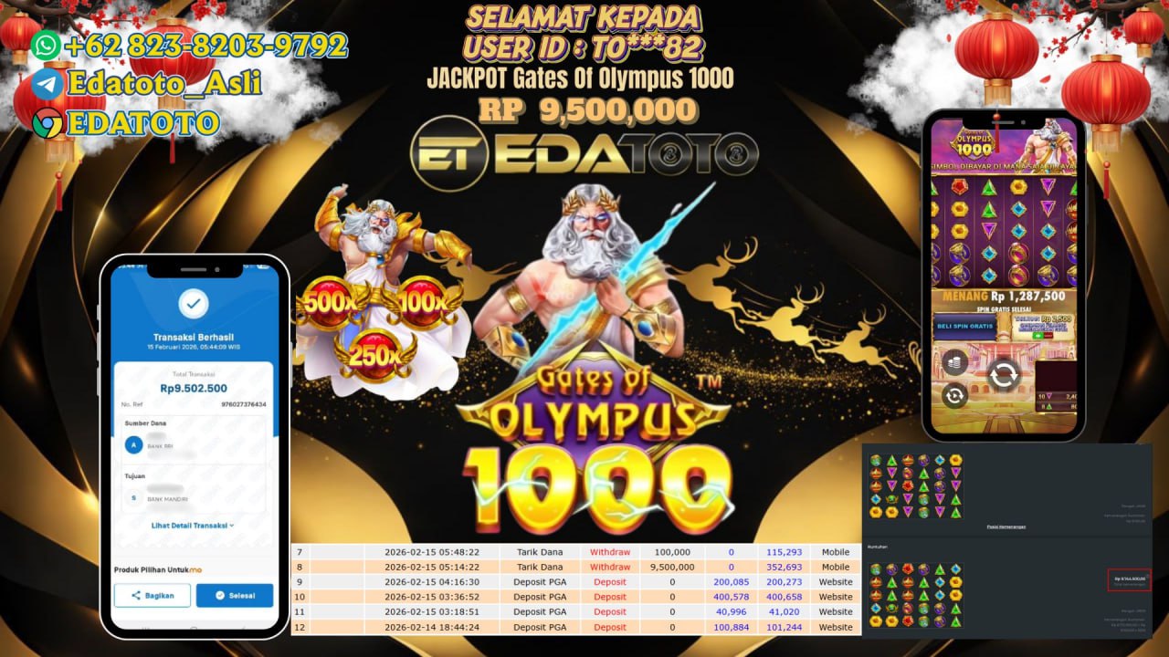 Selamat Kepada Pemilik user ID : To***82 Hari/Tanggal : Sabtu/ 15 februari 2026 Jackpot : Rp, 9,860,000 JT Withdraw : . . .